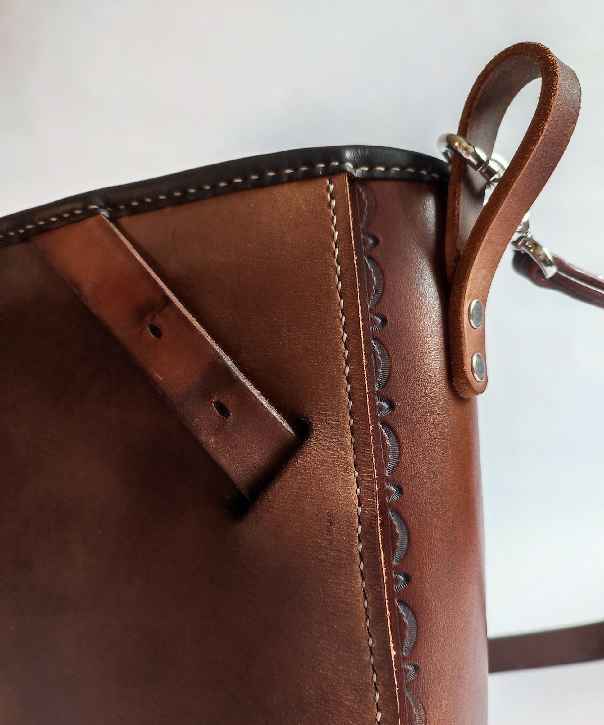Grand sac bandoulière style Western - Cuir de selle recyclée marron.
