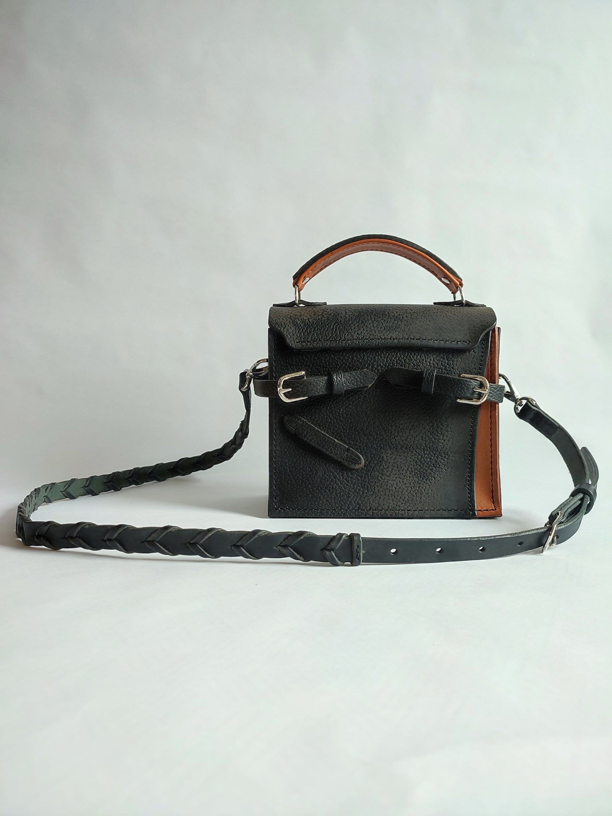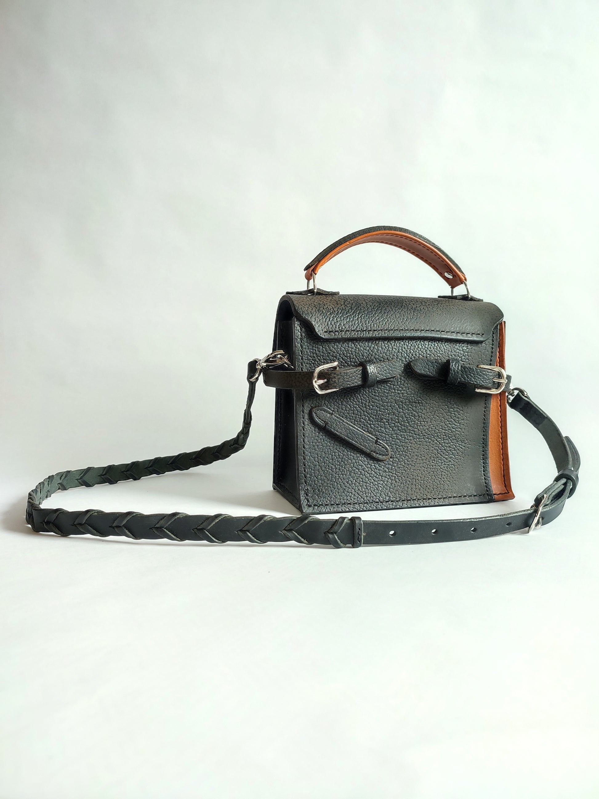 Le Country Kelly : sac à main inspiration luxe – Cuir recyclé noir et cognac - Maroquinerie Cavalière