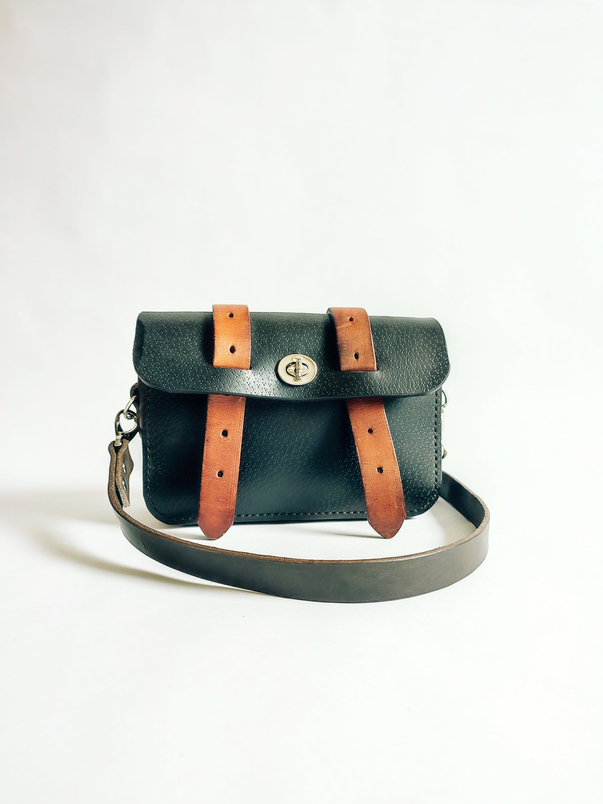 Sac besace noire - Cuir de selle d'équitation recyclé